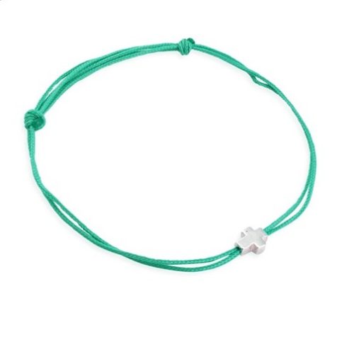 Bracelet – Croix argent & fil vert menthe
