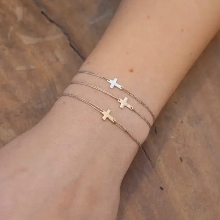 Bracelet fil lurex – Croix latine or