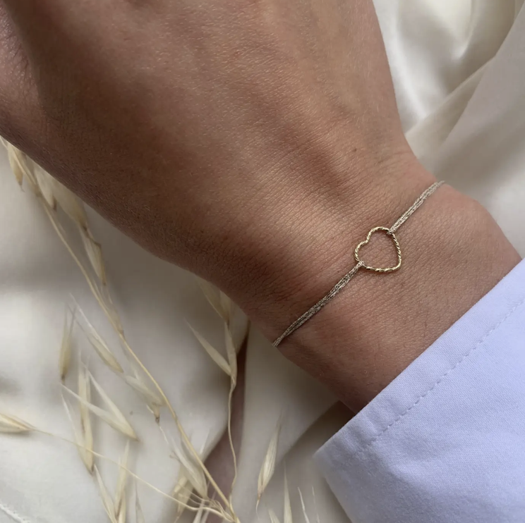 Bracelet fil lurex – Coeur ciselé or