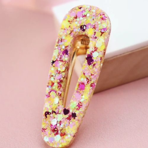 Barrette rectangle – Paillettes jaune et rose