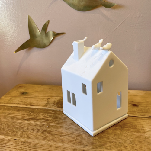 Photophore maison trio d’oiseaux – Porcelaine