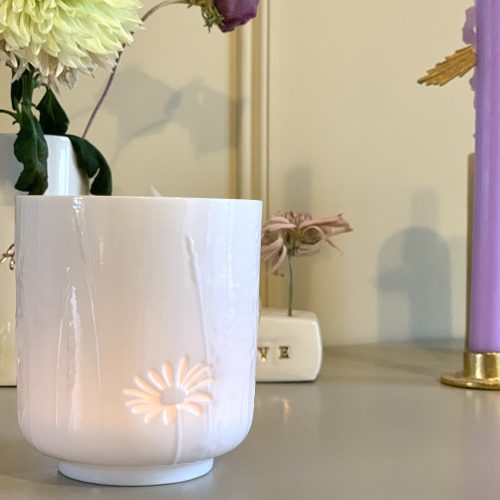 Photophore maison fleurie – Porcelaine