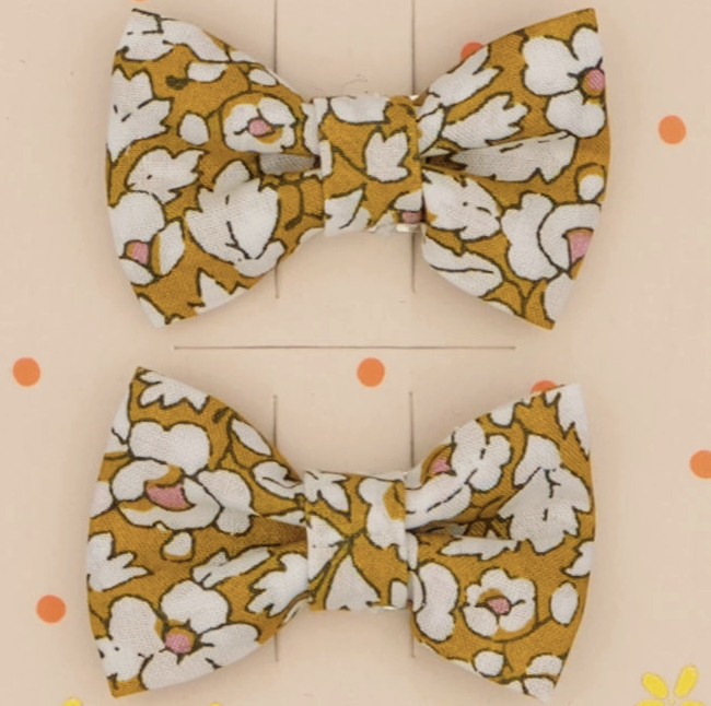 Duo de barrettes – Noeuds papillons liberty ocre