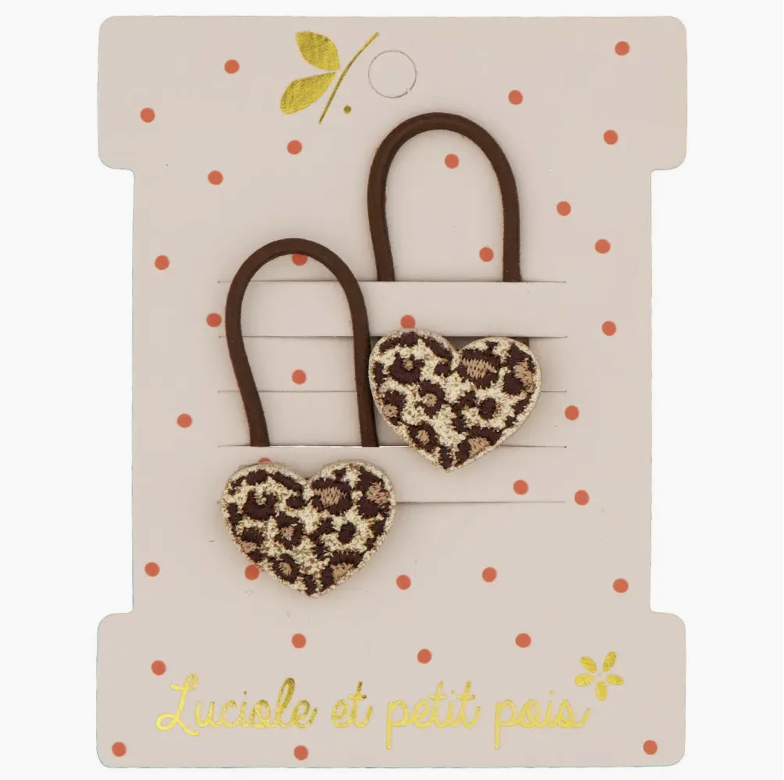 Faîtes briller de mille feux les cheveux de vos enfants avec cette paire d’élastiques coeurs léo en paillettes !