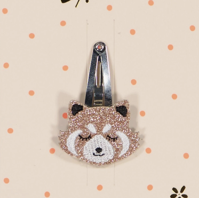 Barrette – Panda roux paillettes roses
