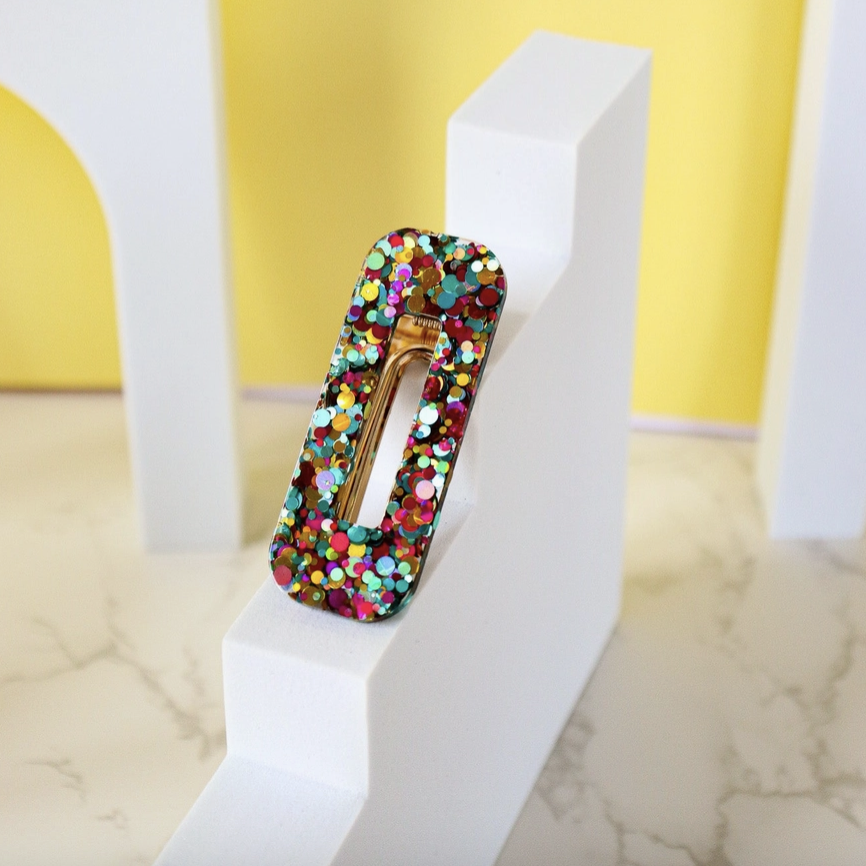 Barrette rectangle – Paillettes multi vert