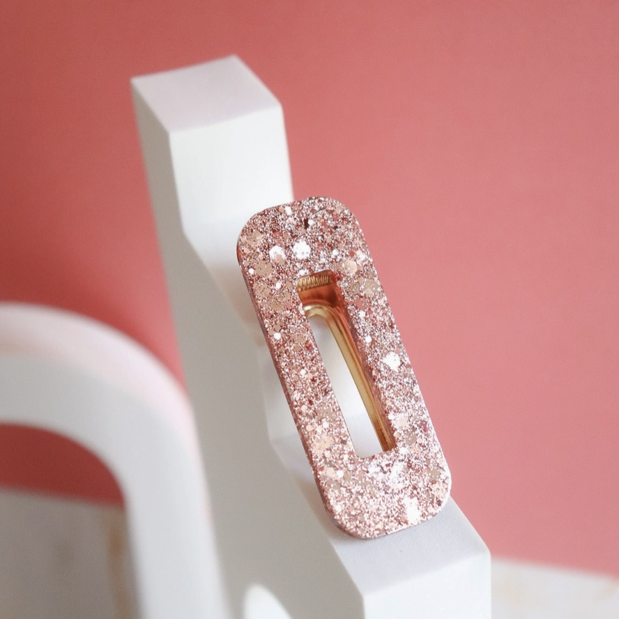 Barrette rectangle – Paillettes rose gold