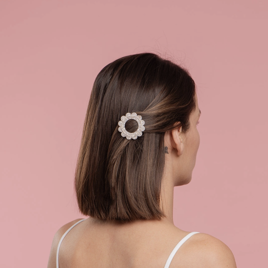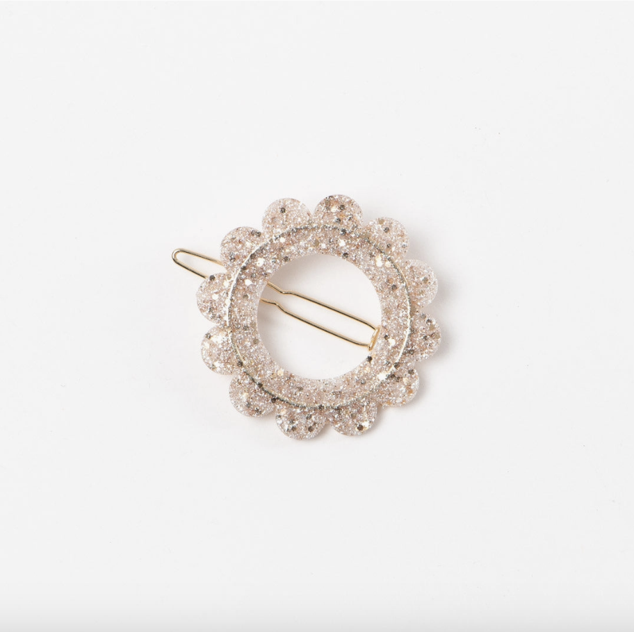 Barrette ronde sunflower – Nacre pailleté