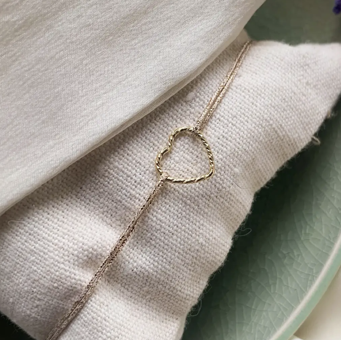 Bracelet fil lurex – Coeur ciselé or