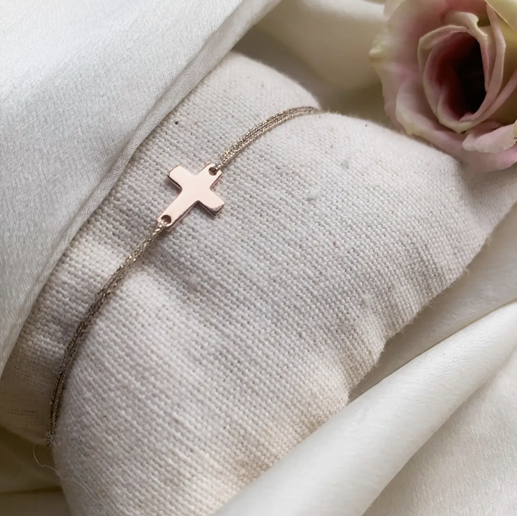 Bracelet fil lurex – Croix latine or