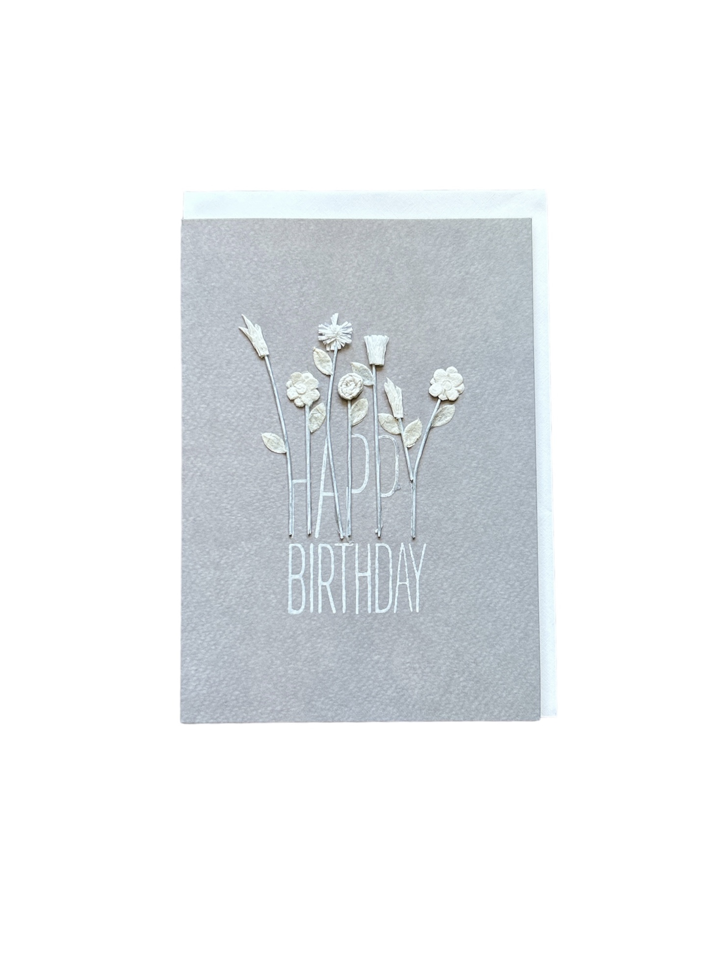 Carte grise fleurs blanches – Happy birthday
