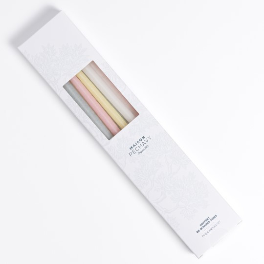 Des bougies colorées “SO Sweet”! Une combinaison de couleurs douces et pastel, parfaite pour la déco d’un baptême par exemple. Ces bougies décoratives ajoutent une touche de lumière et de couleur à vos intérieurs. Créez une atmosphère élégante et romantique grâce aux différents coloris proposés par MAISON PECHAVY. Centre de table, manteau de cheminée, ces bougies colorées agrémentent votre décoration avec élégance. Allumer la flamme de ces cierges fins vous permettra de créer une ambiance chaleureuse et cocooning. La lueur d’une bougie offre toujours une atmosphère propice à la détente. Ces cierges fins sont également parfaits pour magnifier la décoration de vos différents évènements. Sublimez votre table de mariage, de baptême, de noël, ou bien encore d’anniversaire, en jouant avec la diversité de couleurs réunies dans nos coffrets. Une fois allumées, ces bougies apportent une ambiance romantique à votre table et illumineront votre soirée. Chaque coffret offre une palette de couleurs harmonieusement assemblée, créant ainsi une combinaison unique. Décorez votre intérieur grâce à notre gamme de bougeoirs et adaptateurs spécialement dédiés à la réception de ces bougies fines.