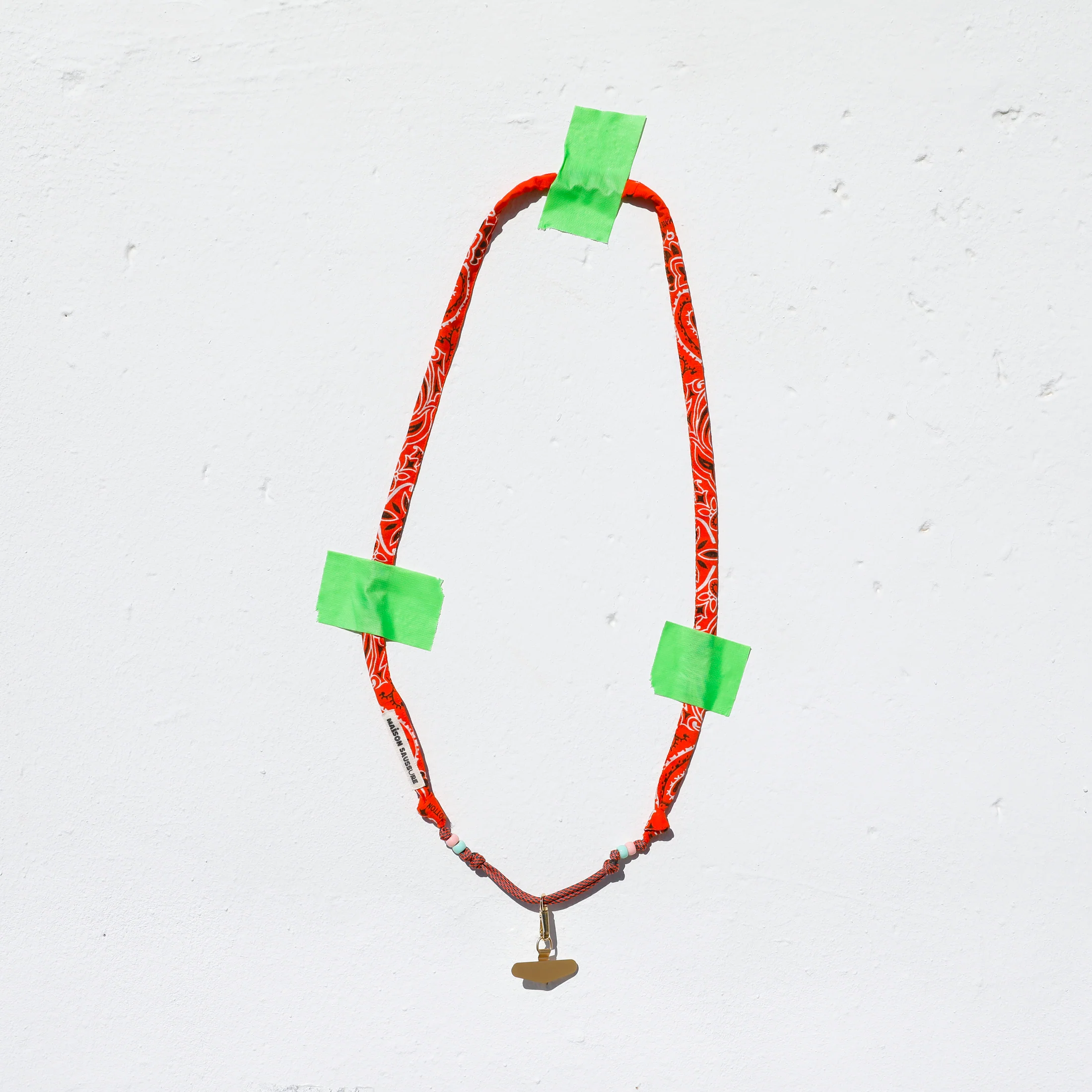 Chaque porte-téléphone est unique grâce à des découpes spécifiques du tissu bandana, pour un accessoire à la fois original et artisanal.