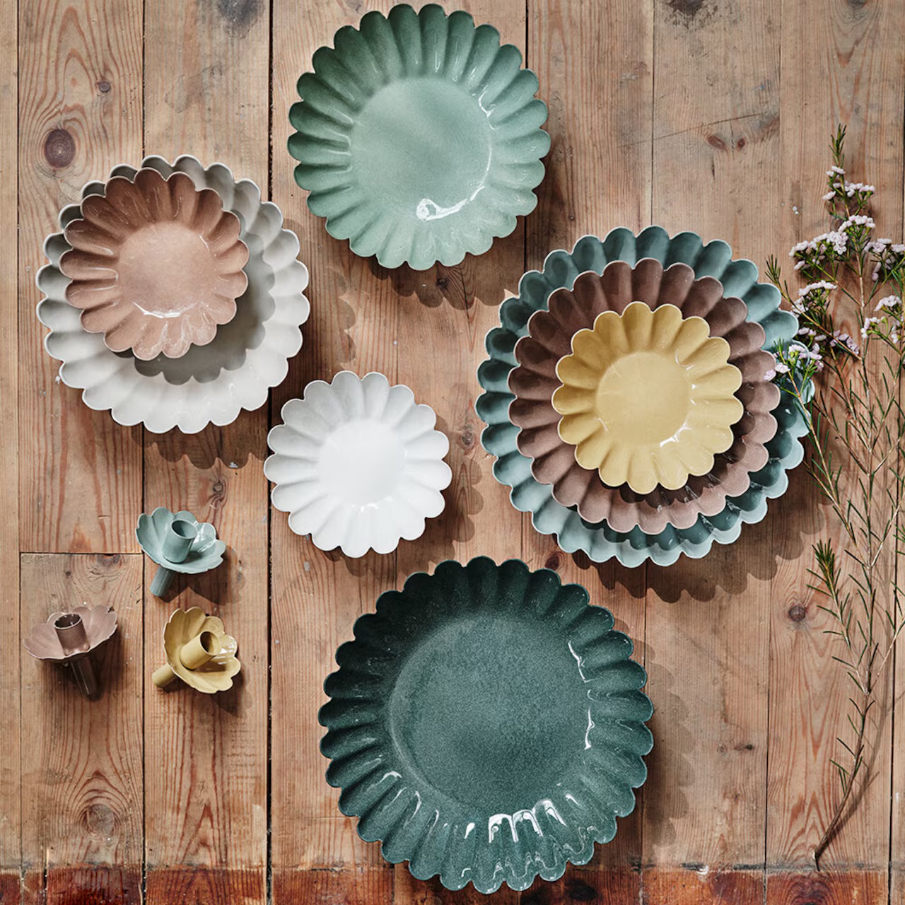 Coupelle fleur en métal peint. Pour y déposer, fruits, biscuits ou vos bijoux. Ici on l’adore!