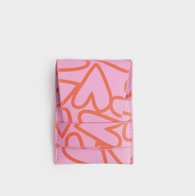 • Etui en PU (polyuréthane) rose à motif coeurs rouges