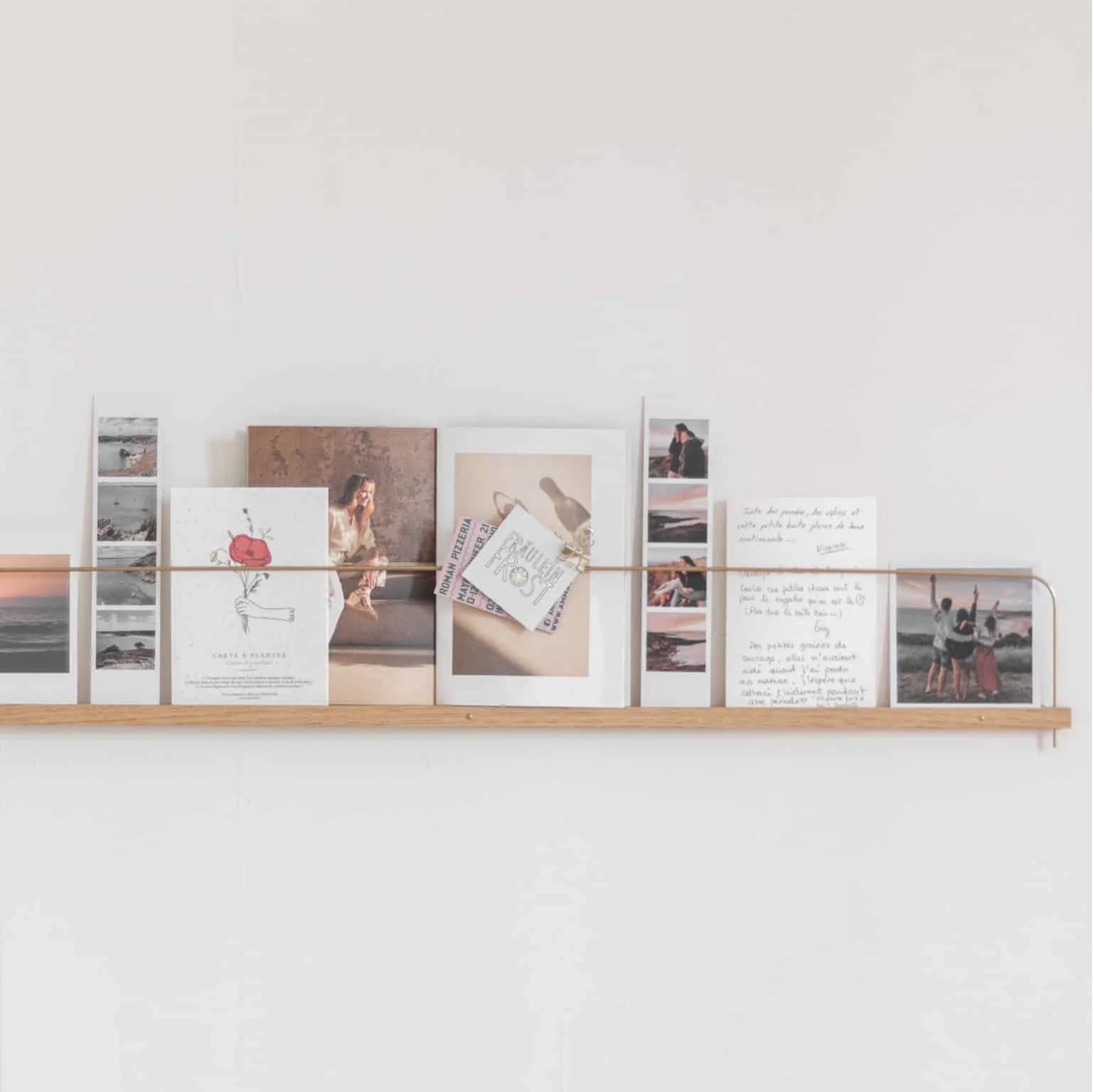 Très grand porte-cartes mural en laiton et bois. Idéal pour afficher vos photos, affiches et décorations. Cet étagère trouvera sa place dans votre entrée, salon ou chambre.
