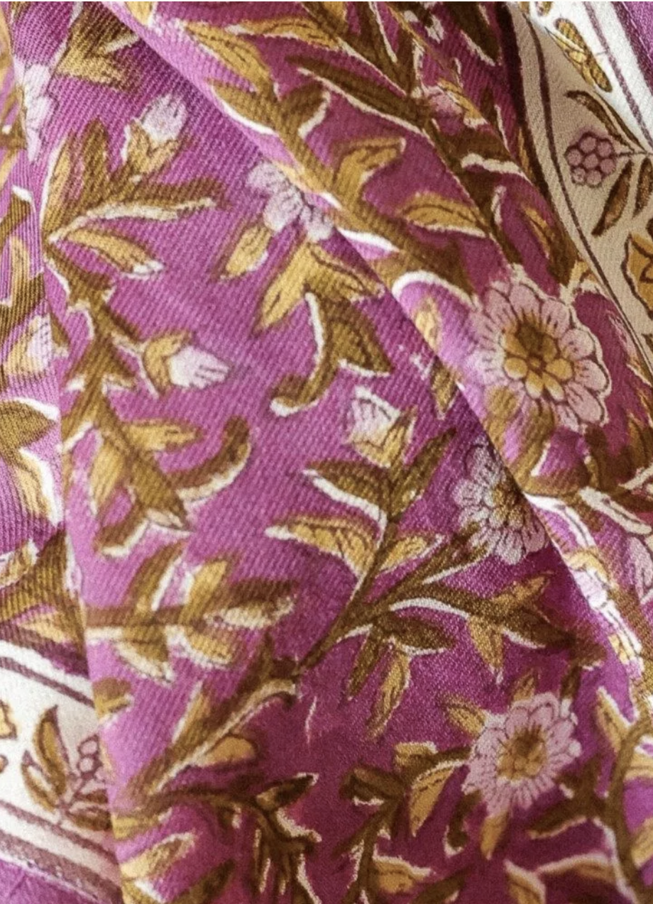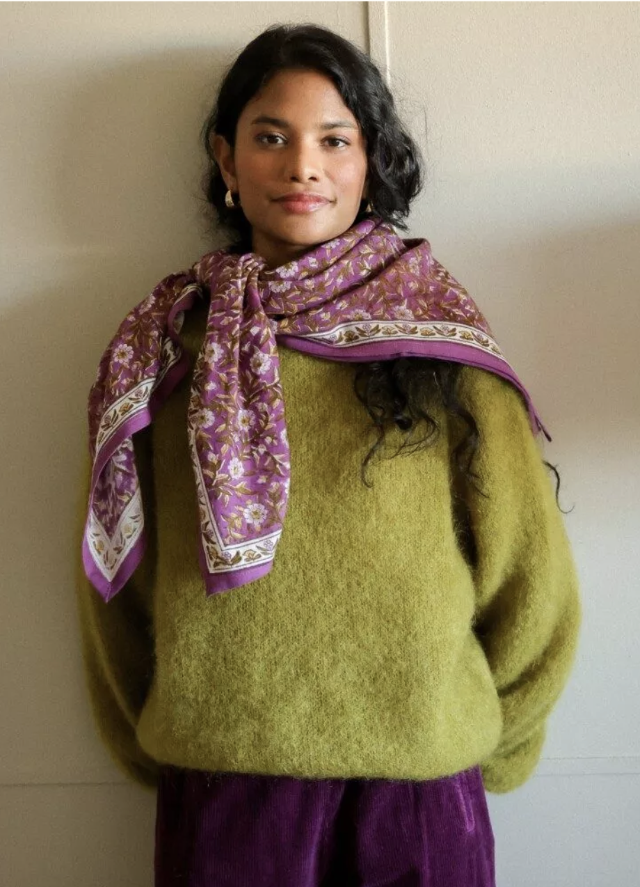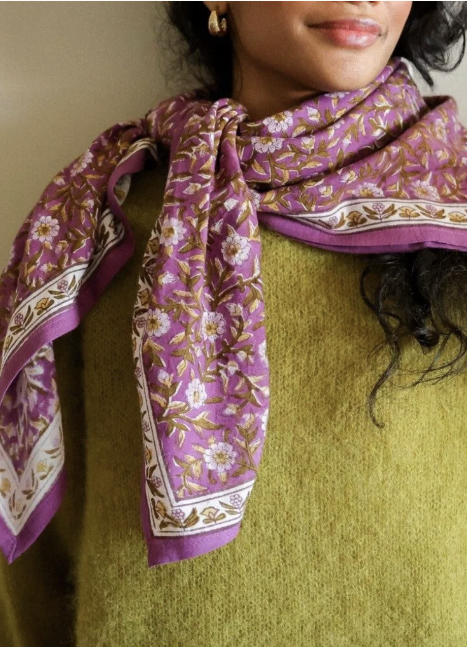 Joli foulard aux imprimés fleuris, un indispensable pour mettre en valeur vos tenues.