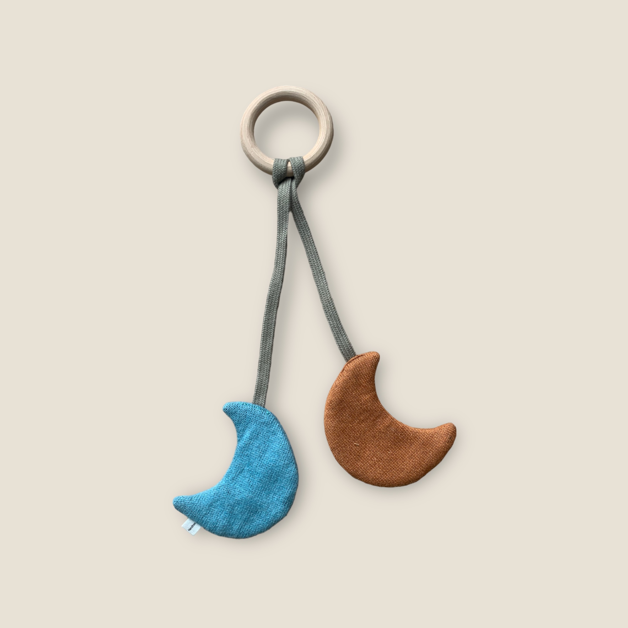 Hochet lune est en coton biologique avec anneau en bois biologique. Les lunes craquent sous les doigts de bébé c’est une une incitation au toucher, sentir et saisir. Ainsi tous les sens de bébé et son développement est encouragé.