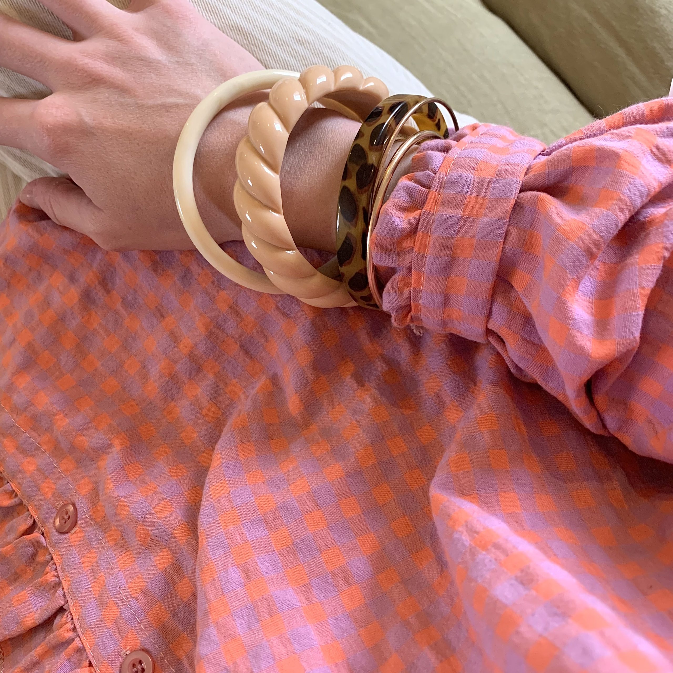 Réalisé en acétate de cellulose, ce jonc torsadé beige vous fera craquer et vous accompagnera au fil du temps et de vos envies ! Seul ou accompagné, ce bracelet rigide torsadé apportera une pointe de texture et de couleur à votre poignet.