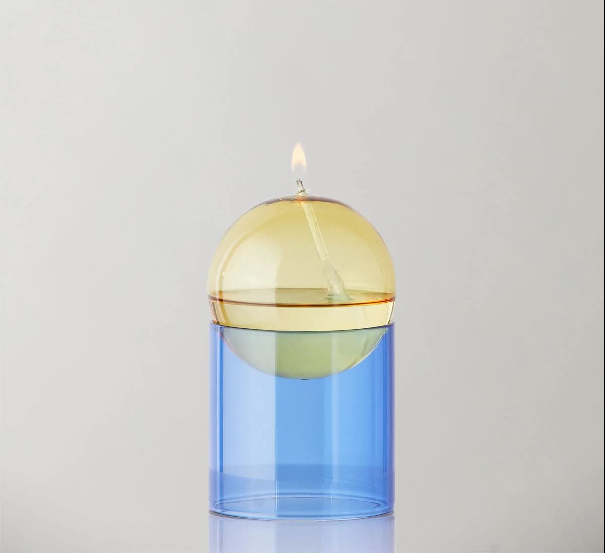 La bougie en verre, y compris la mèche et l’entonnoir, est expédiée dans un tube en carton. Fonctionne avec de l’huile de paraffine.