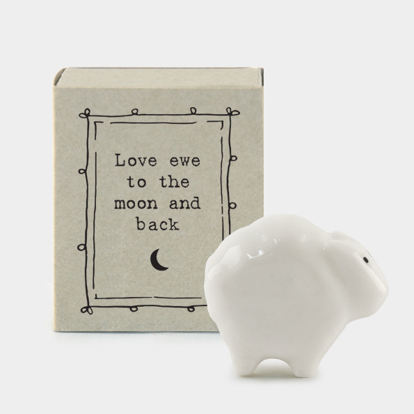Ces petites attentions en céramique sont glissées dans de jolies boîtes d’allumettes. On adore l’idée d’offrir ces petits cadeaux pour des personnes qui vous sont chères. Par exemple ce mouton avec le petit mot “Love every where to the moon and back” (“Je t’aime plus que tout au monde”), une petite attention à offrir à votre moitié !