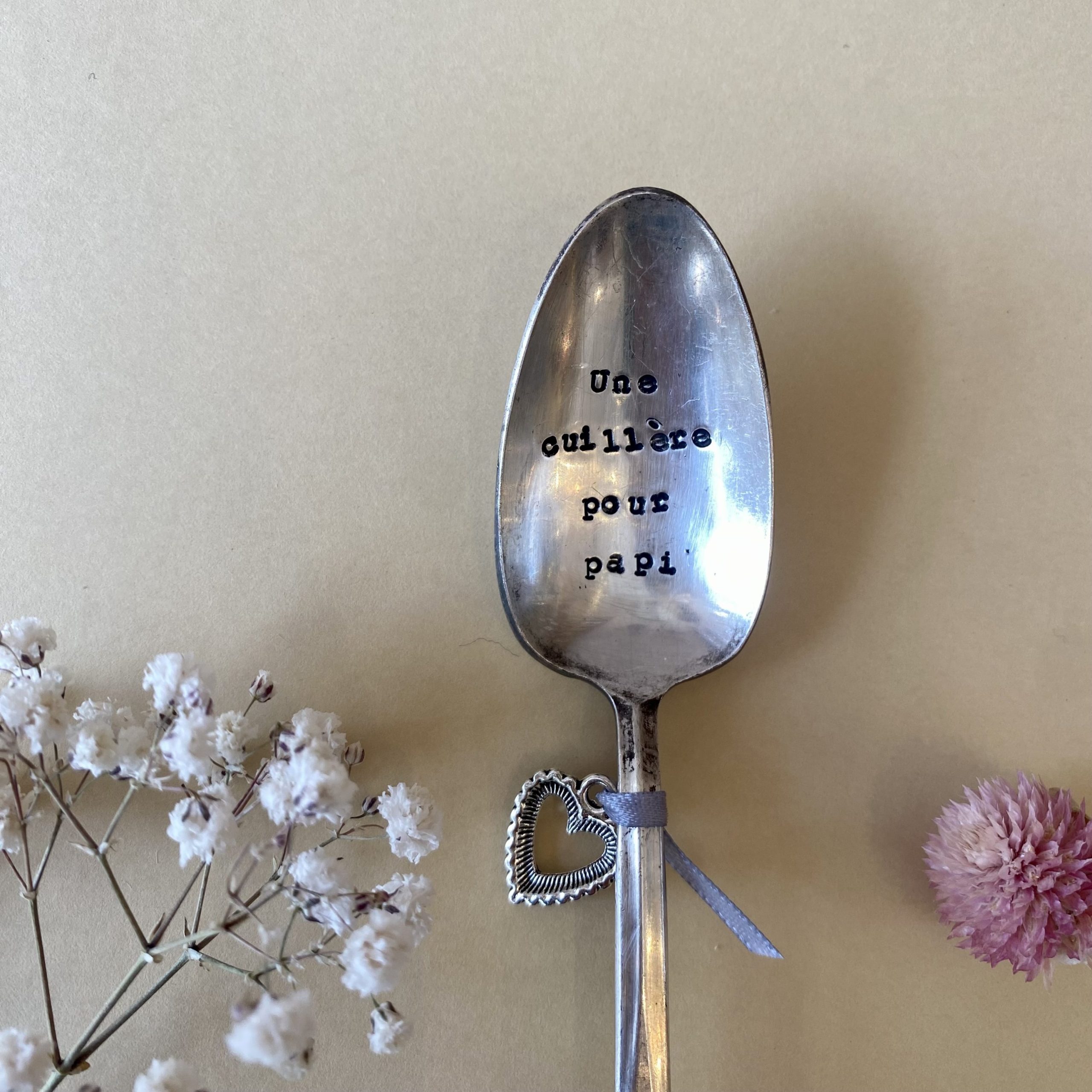 Petite cuillère aux jolis messages! Pour une annonce, une attention ou pour un petit plaisir, offrez-vous une cuillère gravée. Chaque petite cuillère a été chinée puis gravée à la main. Les petites cuillères sont toutes différentes et mesurent entre 10 et 15cm selon les modèles.
