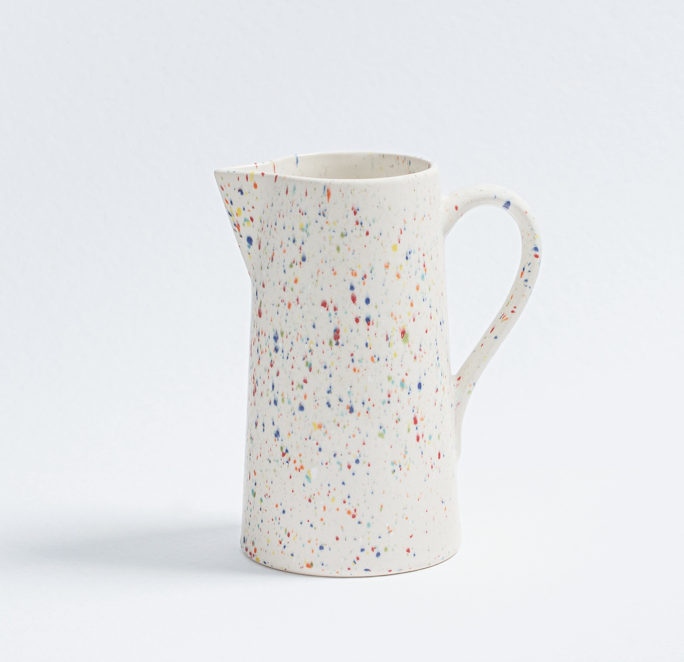 Nous vous présentons notre délicieuse collection de vaisselle tachetée colorée. Ce joli pichet, aux couleurs éclatantes de l’arc-en-ciel, vous fera savourer vos cocktails et limonades dans la joie et la bonne humeur ! Avec sa contenance de 1,5L, il est parfait pour contenir vos boissons fraiches en tant que pichet, mais aussi des fleurs en tant que vase !