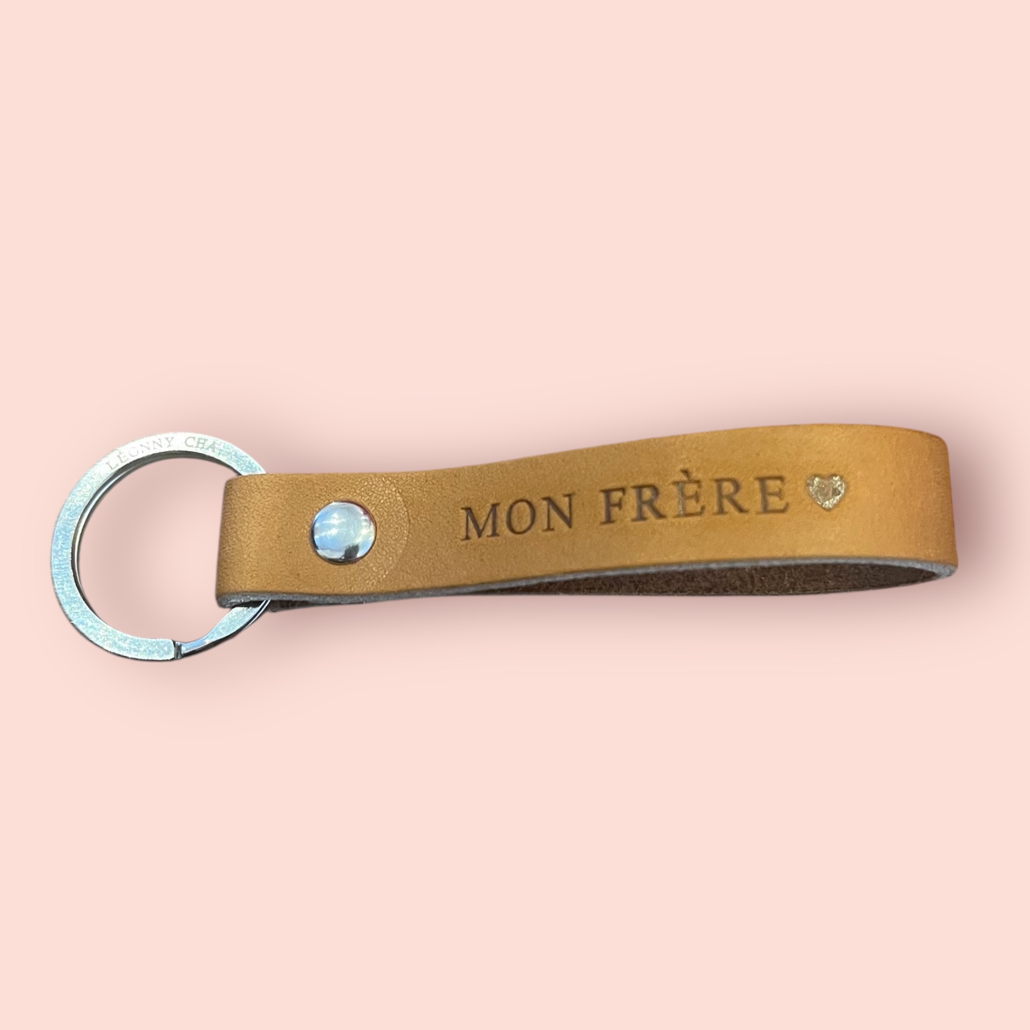 Découvrez notre délicat porte-clés en cuir couleur camel, le cadeau parfait pour votre grand frère , petit frère ou frère de cœur. Pratique et plein de style, ce porte-clés apportera une touche élégante à leurs clés au quotidien. Fabriqué avec soin en Angleterre, ce porte-clés en cuir de qualité offre résistance et esthétique. Sa teinte camel ajoute une note de classe intemporelle. Offrez un cadeau attentionné avec notre porte-clés en cuir couleur camel ‘mon frére’. Un accessoire qui leur rappellera votre affection et votre lien spécial.