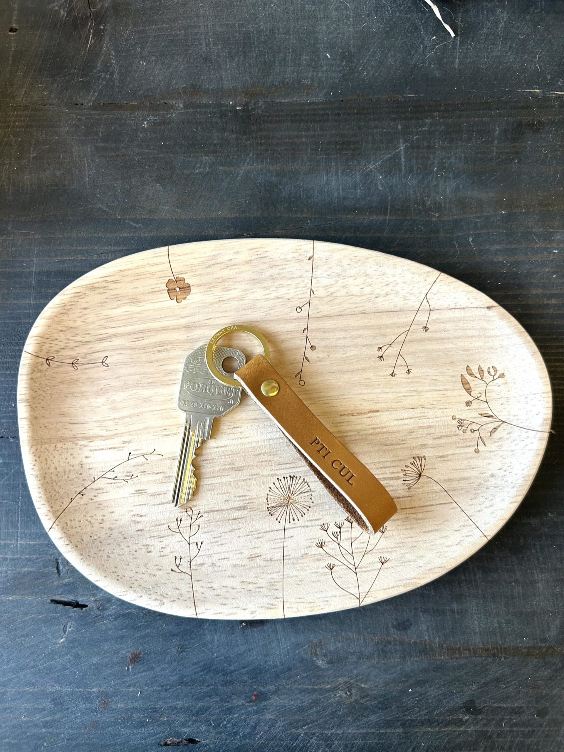 - Porte clés en cuir, gravés à la main