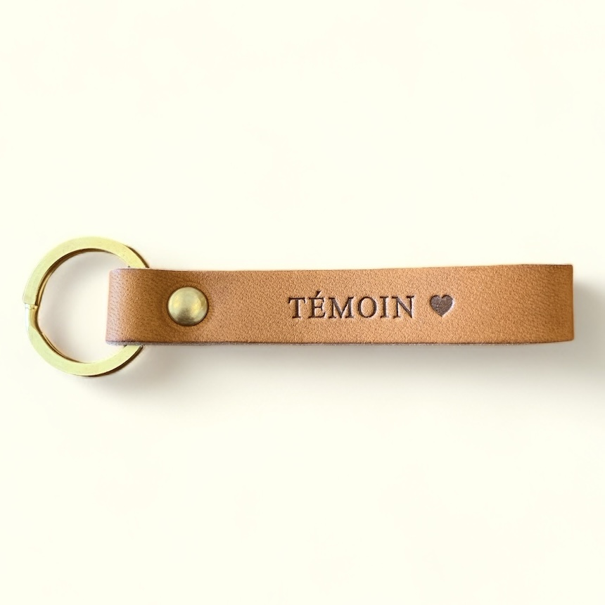 Découvrez notre délicat porte-clés en cuir couleur camel, l’accessoire parfait pour faire une demande spéciale à votre témoin. Pratique et plein de style, ce porte-clés ajoutera une touche d’élégance à ses clés quotidiennes. Fabriqué avec soin en Angleterre, ce porte-clés en cuir de qualité offre durabilité et esthétique. Sa teinte camel ajoute une note de sophistication. Faites une demande originale et mémorable avec notre porte-clés en cuir couleur camel ‘Témoin’. Un accessoire qui rendra cette demande encore plus spéciale et inoubliable.