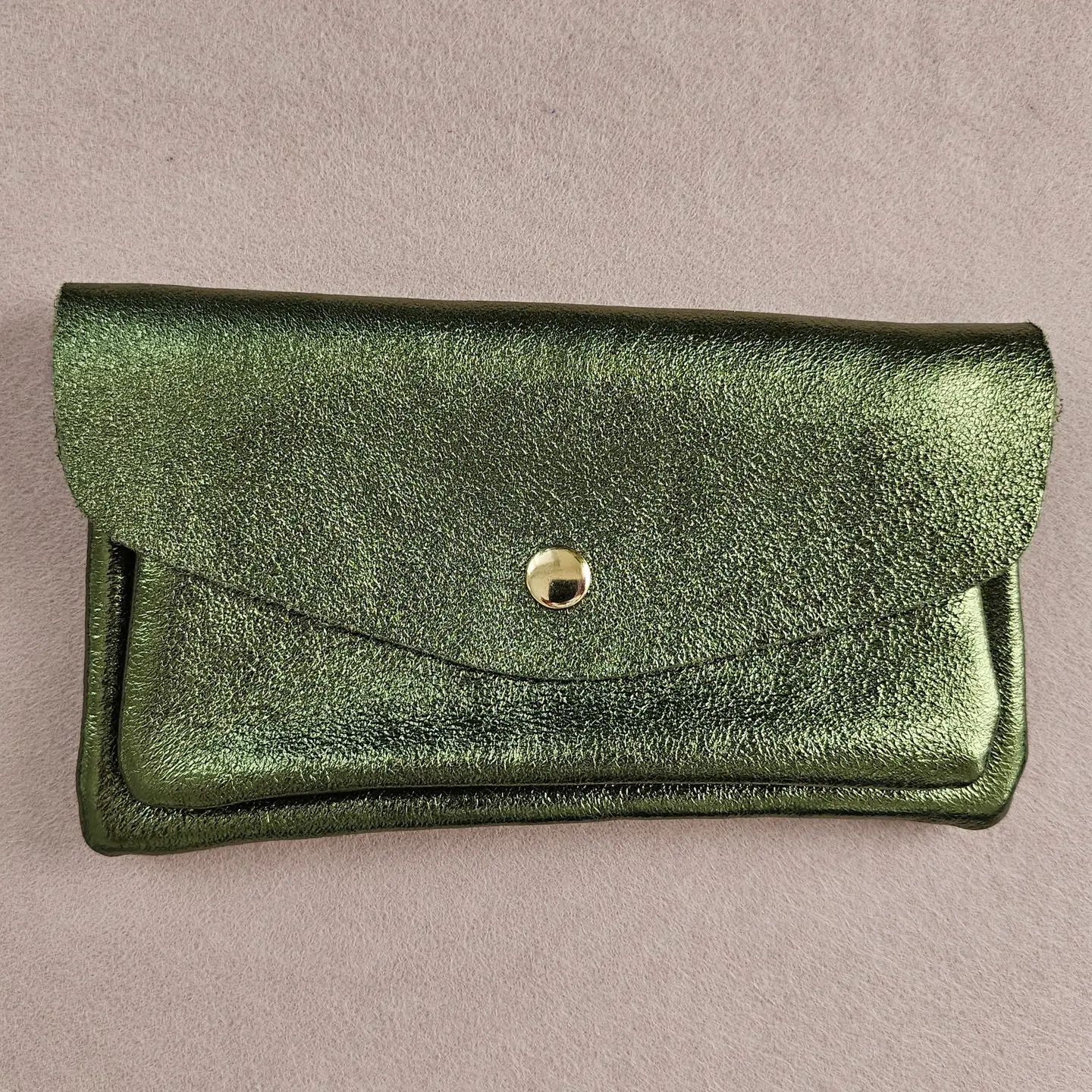 - Porte monnaie en cuir de vachette couleur vert kaki métallisé