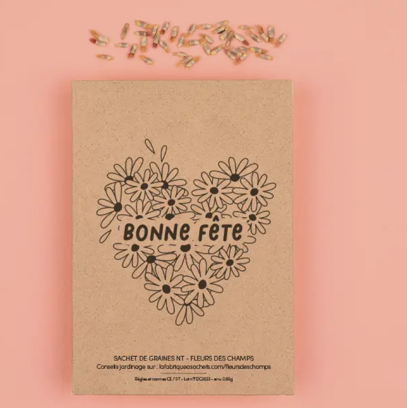 Un petit cadeau à faire pour souhaiter une bonne fête à quelqu’un ? Ce petit présent fabriqué à Nantes est une chouette idée cadeau à petit prix. Si vous souhaitez offrir un présent à vos proches, ce petit sachet de graines sera une attention délicate (et fleurie). Ce sachet de graines à planter laissera un souvenir dans le temps, pour montrer votre amour à vos amis ou vos proches. Les sachets sont en papier recyclable, sur lesquels vous retrouverez un petit message d’amour.