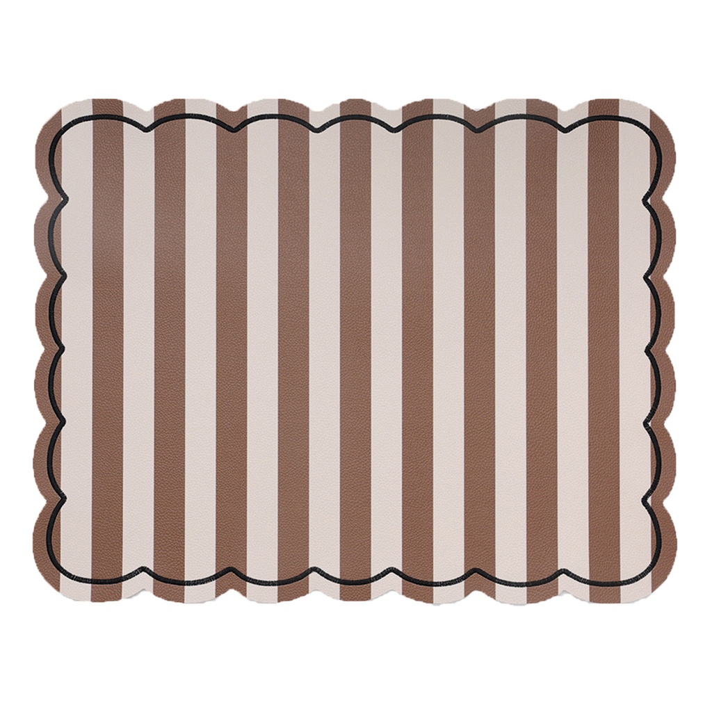 Set de table façon cuir rayé, bords ondulés. Avec une broderie contrastée pour une touche originale. Un coup d’éponge suffit pour le nettoyer.