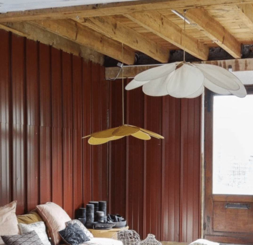 Cette suspension en forme de fleur joue subtilement avec la lumière, diffusant une clarté douce dans la pièce et des jeux d’ombres délicats au plafond. La lampe est livrée avec une tige d’une hauteur de 50cm, si vous souhaitez la tige d’un mètre de hauteur, merci de nous contacter au 03.74.45.50.71, il faudra alors prévoir un envoi comprenant 2 colis (un pour la tige et un autre pour les Pâles).