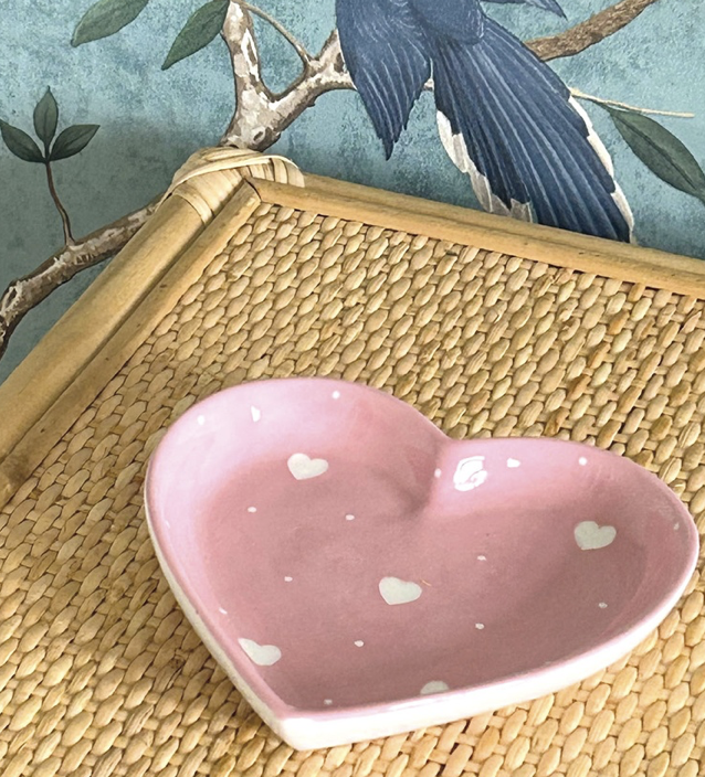 Une jolie coupelle en forme de coeur de couleur rose pour accueillir vos petits bijoux et autres accessoires. Réalisée en céramique et émaillée, on craque pour les coeurs blancs peint sur la coupelle.